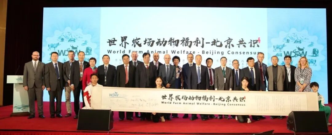 2018年10月在北京举办的第二届世界农场动物福利大会上,16家国际机构联合签署《世界农场动物福利——北京共识》,首次从国际层面明确动物福利对农业可持续发展、粮食安全的重要作用。本届大会吸引包括全球知名供应链采购集团代表在内的500余人出席,设置生猪、家禽、牛羊等多个专业分论坛,分别由英国皇家防止虐待动物协会、美国国家猪肉委员会等国际机构承办。《北京共识》的签署推动国际动物福利理念与中国养殖实践初步对接,为后续政策制定和产业升级提供了理论依据。